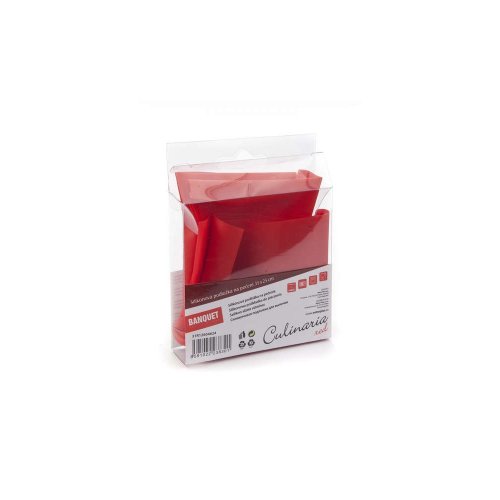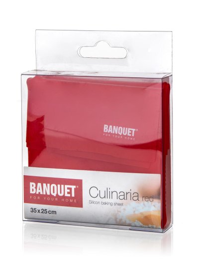 Silikonová podložka na pečení Red CULINARIA. Silikonová podložka je odolná vysokým teplotám do 230 st. C, Dá se skládat a rolovat. Neváže chutě ani pachy pokrmů, má antiadhezní vlastnosti, které se opotřebením nesnižují, snadno se udržuje. Silikon je velmi populární materiál, který pro své jedinečné vlastnosti našel uplatnění i v kuchyni. Vyrábí se z něj různé druhy forem na pečení, vály a válečky na těsto, stěrky, mašlovačky, kuchyňské náčiní a mnohé další výrobky.