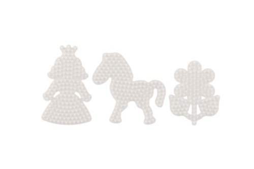Pomůcka pro vytváření obrázků ze zažehlovacích korálků. Sada bílých plastových podložek obsahuje kytičku, koníka a princeznu. Vhodné od 5 let.