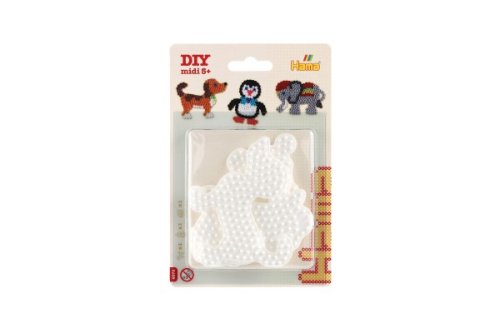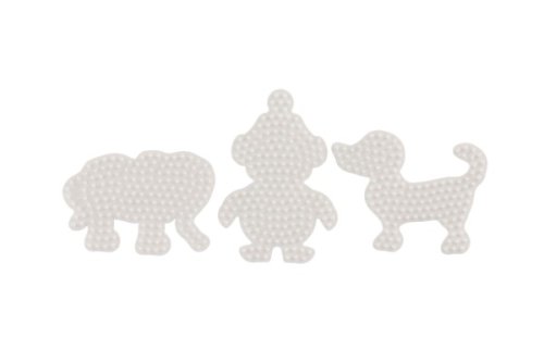 Pomůcka pro vytváření obrázků ze zažehlovacích korálků. Sada bílých plastových podložek obsahuje slona, tučňáka a pejska. Vhodné od 5 let.