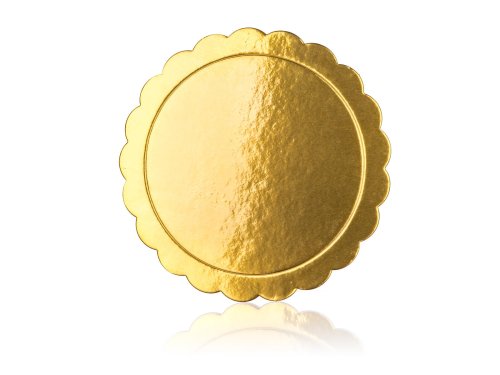 Kulatá podložka na dort CULINARIA. Podložka je vyrobena ze několikavrstvého 3 mm silného kartonu. Z obou stran je potažena zlatou fólií, která zaručuje voděodolnost a nepromastitelnost. Podložka pod dorty je ideální pracovní tácek, využijete ji při práci s dortem, finálním dozdobení a také k přenášení dortu.