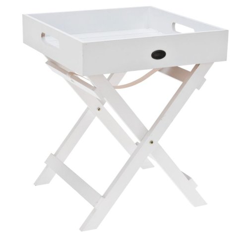 skládací servírovací podnos na nohách- odnímatelný horní tác a skládací nohy- vyrobený ze dřeva s látkovým popruhem pro rozložení- lze využít také jako malý stolek do ložnice, obývacího pokoje, či na terasu a balkon- rozměry: 30 x 30 x výška 36 cm- značka: HOMESTYLING
