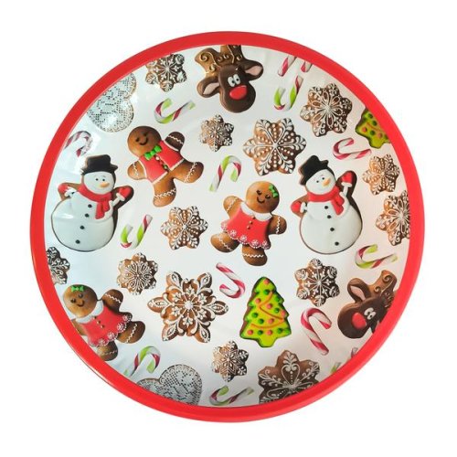 PODNOS VÁNOČNÍ KULATÝ "PERNÍČKY" 26x2,5CM PLECHOVÝ