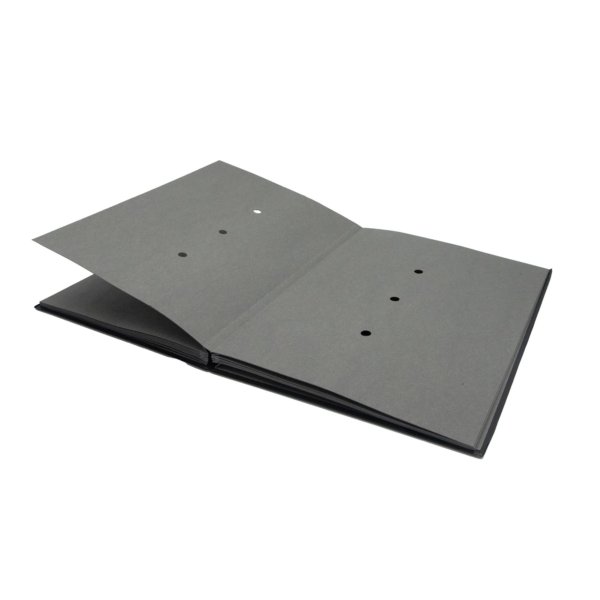 Okraje listů jsou chráněny plátnem, uvnitř se nachází karton se 3 otvory na středu listu