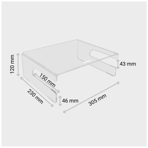 - Podstavec pod monitor s výřezem na klávesnici - Vysoce kvalitní 6 mm čirý akryl - Nosnost až 15 kg - Výška 120 mm - Úložný prostor pod stojanem na dokumenty nebo klávesnici - Rozměr 305 x 230 x 120 …