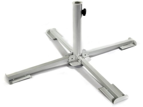 Skládací kovový stojan, s plastovou vložkou, je vhodný na uchycení zahradního slunečníku, venkovního sušáku, nebo jako stabilní ukotvení zahradního altánu. Stojan je po rozložení vhodné zatížit betonovou dlažbou pro zajištění stability. Dlažba není součástí dodávky, maximální velikost dlaždice pro připravené kovové patky je 40 x 40 cm.