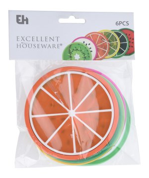 Podtácek kulatý pr. 9 cm, silikon, mix motivů (6 ks). průměr: 9 cm materiál: silikon mix motivů: limetka, citrón, pomeranč, kiwi, vodní meloun, dračí ovoce balení: 6 ks Sada protiskluzových podložek …