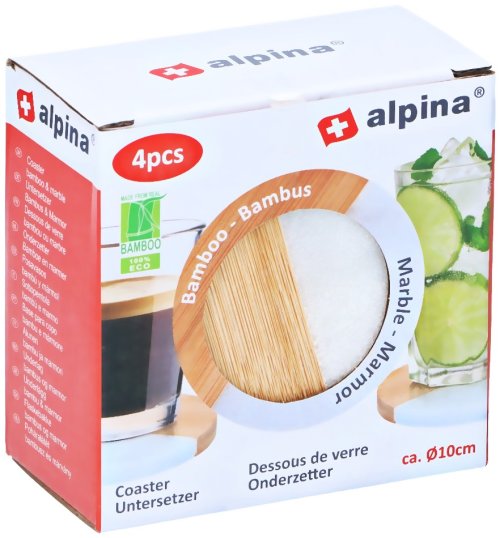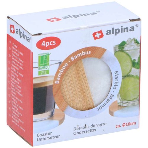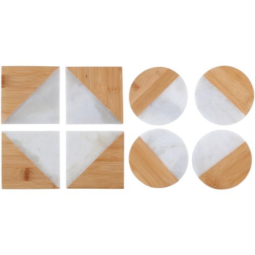 Přírodní materiál mramor/dřevo.Rozměr 10 x10 x 1 cm.4 ks čtverec.