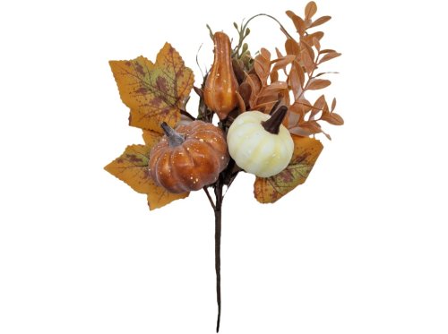 Barevný podzimní zápich s dekorací dýní a listí je ideální k ozdobení květináčů, truhlíků nebo věnců. Vhodný pro venkovní i vnitřní aranžmá. Vytvořte si s ním útulnou sezónní atmosféru.