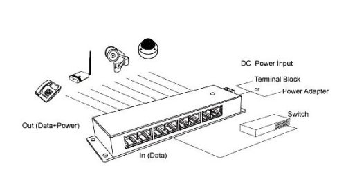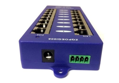Panel integrující osm gigabitových pasivních POE injektorů s