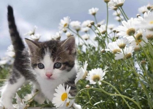Pohlednice 3D - Květinové kotě