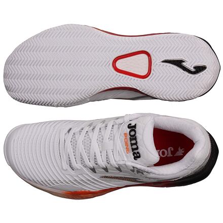 Pánská tenisová obuv JOMA Point Men 2532 je navržená pro pravidelné a klubové hráče, kteří vyžadují maximální výkon na kurtu. Boty poskytují dokonalou kombinaci stability a dynamiky. Svršek je vyrobený z lehké, pružné a prodyšné textilie. V tomto materiálu jsou malé perforace VTS pro lepší odvětrávání nohy. Na svršku má tepelně utěsněnou gumu prostřednictvím technologie JOMA SPORTECH, která chrání nohu a optimalizuje přizpůsobení. Ve špičce se nachází vstřikovaná guma technologie PROTECTION k jejímu zpevnění a větší ochraně při nárazu. V patě je také výztuha EXO COUNTER pro zajištění stability při změnách směru. Mezipodešev je vyrobena z lehkého, pružného phylonu s technologií STABILIS pro maximální odpružení, stabilitu a pohodlí při hře. Gumová podrážka DURABILITY zaručuje vysokou odolnost proti oděru.