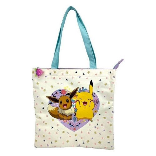Prostorná látková taška s květinovým designem a motivy Pokémonů.