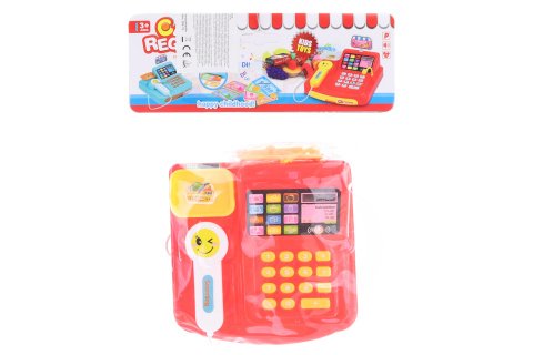 Plastová pokladna se čtečkou zboží a karet. Součástí jsou plastové peníze.Čtečka vydává zvuky. Rozměry pokladny cca 15 x 13 x 6,5 cm. Napájení 2x AA baterie (nejsou součástí balení).Baleno v sáčku.Věk 3+