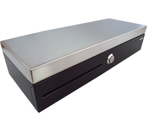 Pokladní zásuvka flip-top FT-460V2 - bez kabelu, se zam. krytem, NEREZ víko, černá