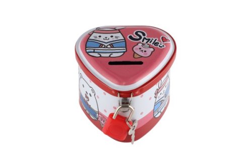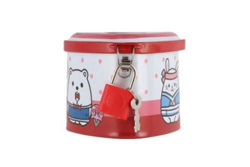 Plechová kasička je skvělou pomůckou, jak děti naučit hospodařit se svými penězi, ale i k procvičení počítání! Na vrchní části pokladničky je otvor pro vložení mincí. Pokladna je na zámek, takže jsou ušetřené penízky v bezpečí. Rozměr pokladničky 8 x 7 cm.