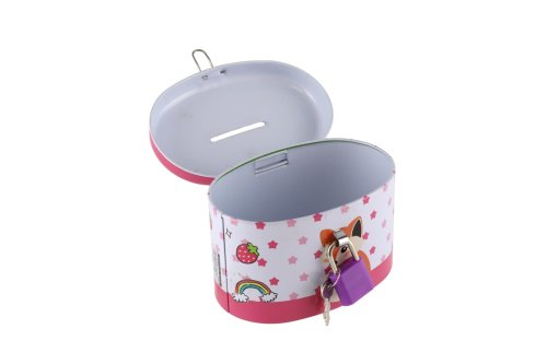 Za penízky se dá koupit tolik věcí, to ví přece každé malé dítě. Ale kam s nimi, aby se rychle nerozkutálely a hlavně, aby byly v bezpečí? Plechová pokladnička je ideální řešení. Velikost pokladničky: 10 x 6 cm Není hračka