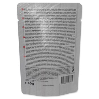 Doplňkové krmivo pro koťata – polévka s kousky tuňáka, kterou můžete dopřát samostatně mebo jako doplněk k suchému krmivu.
