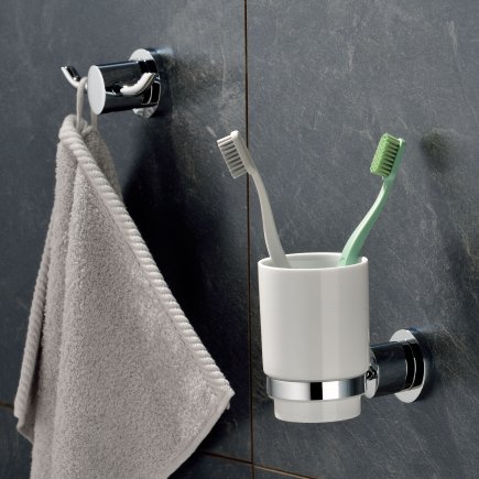 materiál: chromovaná mosaz / sklo- délka: 45 cm- hloubka: 15 cm- bezpečnostní sklo- 2 možnosti upevnění:- extrémní lepící systém bez vrtání- lze i přivrtat- značka: KELA
