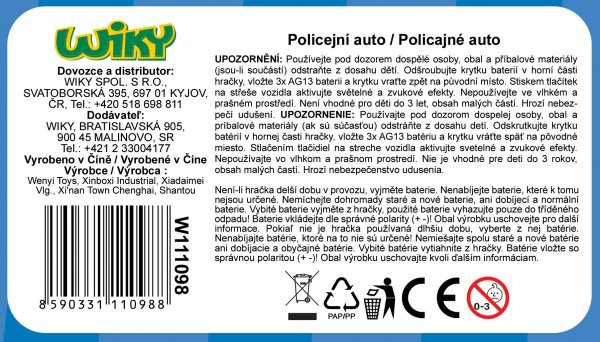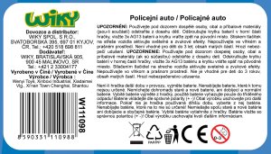 Policejní auto (český design). Velikost 24 cm. BO se světelnými a zvukovými efekty. 3xAG13 baterie součástí.