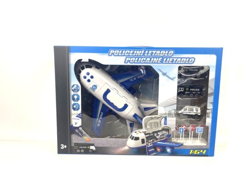 Policejní letadlo s nákladním prostorem + 3 autíčka 1:64 je skvělý hrací set, který nabízí spoustu zábavy. Letadlo je vybaveno světelnými a zvukovými efekty, což přidává na atraktivitě během hraní. Součástí balení jsou tři kovová autíčka na setrvačník v měřítku 1:64. Letadlo má otevírací nákladní prostor, který umožňuje snadné naložení a vyložení autíček. Navíc je velmi praktické a přenosné díky rukojeti, a schody z letadla lze snadno vyklopit pro ještě větší herní zážitek.