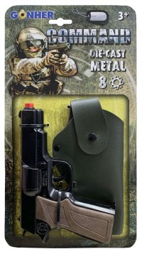 Policejní kovová pistole s pouzdrem Command osmiranná.