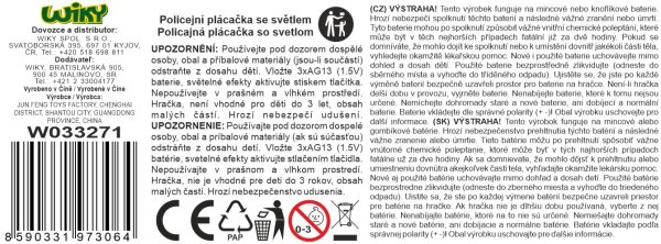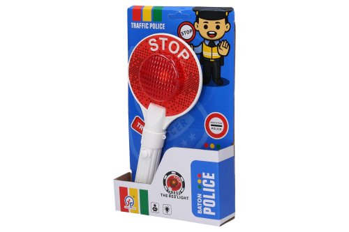 Policejní plácačka. Velikost 23 cm. Jedna strana červené světlo, druhá strana zelené světlo. Světelné efekty. 3xAG13 baterie součástí.