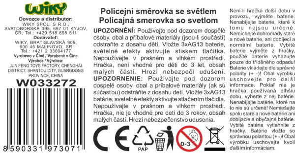 Policejní směrovka se světlem. Velikost 23 cm. Světelné efekty. 3xAG13 baterie součástí.