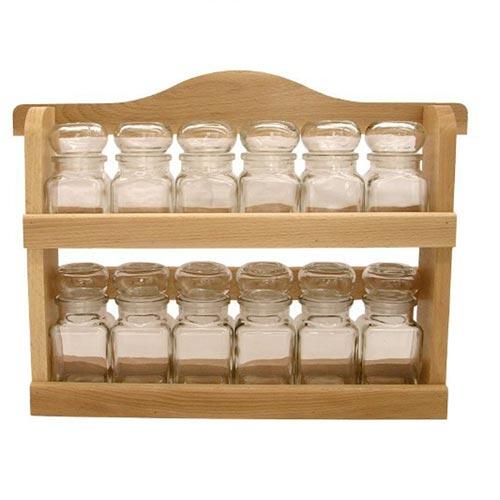 Dřevěná police s kořenkami Vám umožní mít Vaše oblíbené koření vždy po ruce, polici lze pověsit i na zeď.
