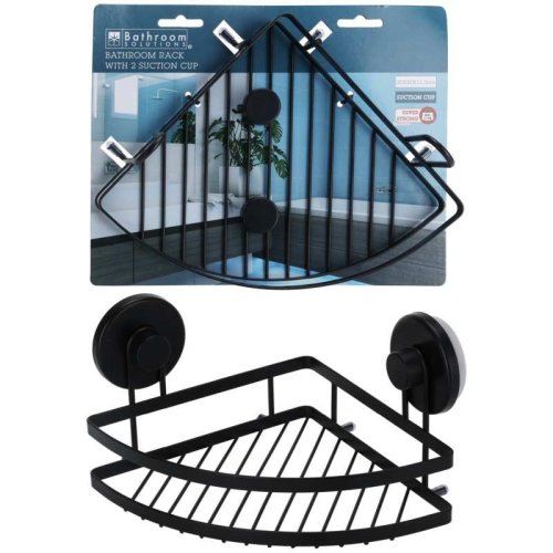Polička do sprchy rohová s přísavkami.Materiál: kovRozměr 200 x 200 x 125 mmBarva: černá