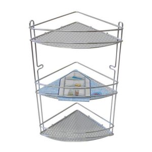 Rohová třípatrová polička je praktický pomocník do každé koupelny, idealní na uskladnění kosmetiky či hygienických potřeb.