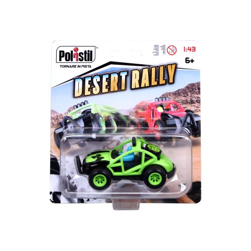 Náhradní autíčko pro autodráhy Polistil v měřítku 1:43. Omrzelo vás už vaše autíčko nebo se porouchalo? Zvolte Polistil Desert Rally zelené a závoďte dál!