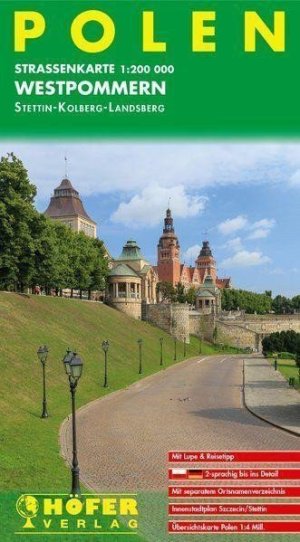 Mapa 1:200 000 - 2 jazyky do posledního detailu - Se samostatným rejstříkem názvů míst polsko-německý / německo-polský - mapa centra města Štětín / Štětín - S lupou - S cestovním tipem - Přehledová mapa Polska 1:4 milionu