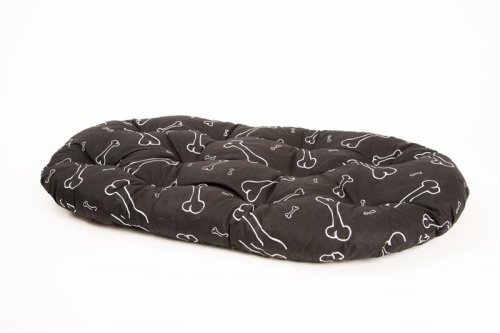 Pohodlný a kvalitní polštář vyrobený z bavlněné látky potištěné kostmi a kostičkami, vyplněný dutým vláknem. Polštář je v několika bodech prošitý, aby nedošlo k nerovnoměrnému rozmístění výplně.