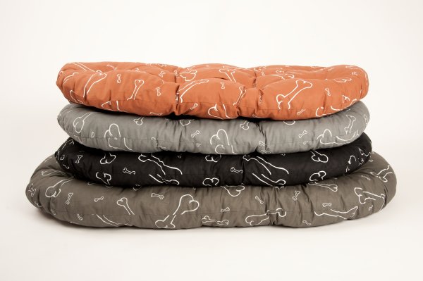 Pohodlný a kvalitní polštář vyrobený z bavlněné látky potištěné kostmi a kostičkami, vyplněný drceným molitanem. Polštář je v několika bodech prošitý, aby nedošlo k nerovnoměrnému rozmístění výplně.