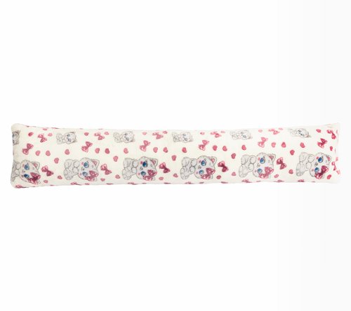 • Polštářek s dětským motivem ve tvaru válečku, který lze využít jako těsnění položením na okenní parapet nebo na podlahu ke dveřím, nebo jako mantinel do dětské postele. Polštářek má poutko na zavěšení a lze prát na 30°C.