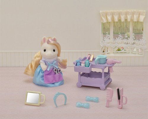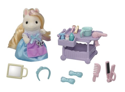 Sada Poník s vlasy v kadeřnictví obsahuje vozík, vlasové doplňky a Manely Pony matku Serafinu, kadeřnici s hedvábnými vlasy. Vytvářejte různé účesy pomocí přiložených vlasových doplňků. Všechno příslušenství lze uložit do vozíku. Nůžky a hřeben lze mít v kadeřnické kapse. Figurky mohou držet zrcátko, vysoušeč vlasů, žehličky na vlasy a misku. Zkombinujte se sadou Kadeřnický salón pro poníky (prodává se samostatně) pro ještě více zábavy s vlasy a make-upem! Stimuluje nápadité hraní rolí u dětí. Věk: 3+