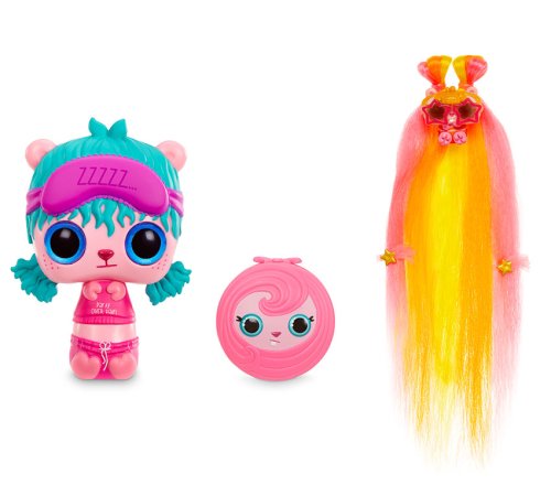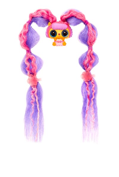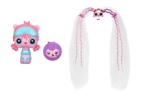 Objev, jaká panenka se skrývá v uzlíčku z vlasů! A budou vlasy vlnité nebo rovné? Jakou budou mít barvu? Vlasy si můžeš přidělat gumičkou do vlastního účesu. V každém balení pro sebe najdeš 4 gumičky a 2 sponky.