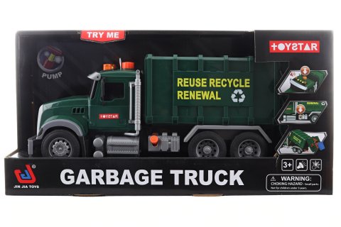 Krásné velké auto - popelář. Napájení na 3x AG13 baterie, které jsou součástí balení. Auto má na střeše 3 tlačítka s fukncemi-troubení a zvuk motoru, pípání při couvání a startování. Kontejner na odpadky lze zvednout a vyklápět. Materiál plast,kola jsou pogumovaná. Auto je na setrvačník. Baleno v otevřené krabici. Rozměry balení cca 42x21x14 cm. Rozměry auta 36x15x13 cm. Věk 3+
