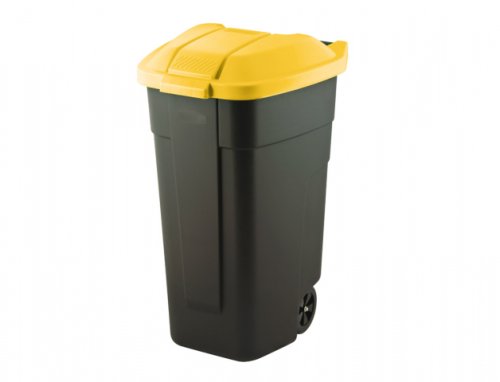 Prostorná popelnice je vhodná i pro větší úklidové práce doma či na zahradě. Je vybavena praktickou rukojetí a odolnými kolečky, které umožní pohodlné přemístění popelnice z místa na místo. Špičková pryskyřice, ze které je nádoba vyrobena, je odolná vůči měnícím se povětrnostním podmínkám a možnému mechanickému poškození. Barva: černá a žlutá. Objem: 110 l. Rozměry: 58 x 52 x 88 cm.