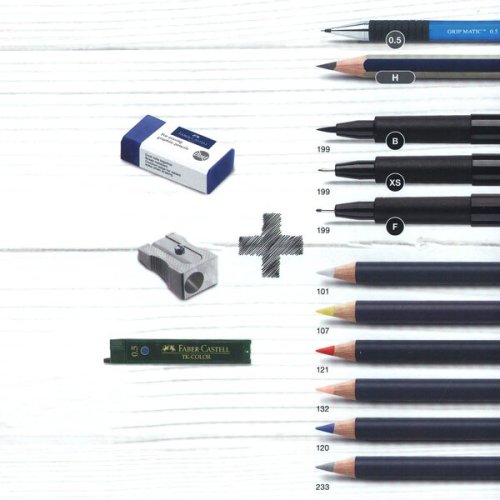 SADA OBSAHUJE:, * tužka Goldfaber (H), * 6 pastelek Goldfaber (mix barev), * tuhy do mikrotužky 0,5 mm (modrá barva, 12 ks), * mikrotužka Grip Matic 0,5 mm, * fixa Pitt Artist Pen (štetečkový hrot B, černá barva), * 2 linery Pitt Artist pen (černá barva, hrot F, XS), * ořezávátko, * guma, VLASTNOSTI:, * pigmentovaná tuš, * vysoká stálost barev, * voděodolný a permanentní, * neprosakuje skrz papír, * bez kyselin, zápachu, pH neutrální, TYPY HROTŮ POPISOVAČŮ FABER-CASTELL PITT ARTIST PEN, Vybírat můžete ze specializovaných řad Pitt Artist Pen Manga, Comic, Hand Lettering nebo Metalic., , Art & Graphics (6MB), Pera Pitt Artist (9MB), Tabulka barev (200KB), Řada KREATIVNÍ STUDIO představuje sortiment pro kreativní amatérské umělce, kteří v rámci svých aktivit ve volném čase rádi používají vysoce kvalitní výrobky za přijatelnou cenu., Mezi výrobky Faber Castell je bezpečně poznáte podle modrého loga na přebalu.