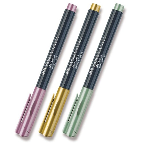 • PH neutrální inkoust bez obsahu kyselin, * inkoust je odolný proti působení slunečního záření, * voděodolný, vhodný pro savý a tmavý papír, Pro použití na papíře i na většině hladkých povrchů jako je porcelán, sklo, kov či plast. Po 30 minutách v troubě při teplotě 160° C je voděodolný. Nerozmazávající se po papíře., Není potřeba třepat či pumpovat, je možné ihned psát., ŠÍŘE STOPY 1,5 MM., [FC Metalické popisovače] , Tip: Prohlédněte si v anglické verzi KREATIVNÍHO KATALOGU METALICKÝCH POPISOVAČŮ FABER-CASTELL, co všechno s popisovači dokážete., Řada KREATIVNÍ STUDIO představuje sortiment pro kreativní amatérské umělce, kteří v rámci svých aktivit ve volném čase rádi používají vysoce kvalitní výrobky za přijatelnou cenu., Mezi výrobky Faber Castell je bezpečně poznáte podle modrého loga na přebalu.,