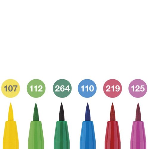 PH neutrální inkoust bez obsahu kyselin, * inkoust je odolný proti působení slunečního záření, * po zaschnutí voděodolný, nerozmazávající se na papíře, * kvalitní štětečkový hrot zaručuje maximální pružnost a spolehlivý průtok inkoustu, * pigmenty nejvyšší jakosti, * plastové pouzdro vyrobeno ze 100 % recyklovaného plastu, , TYPY HROTŮ POPISOVAČŮ FABER-CASTELL PITT ARTIST PEN, TIP: K uměleckým popisovačům můžete potřebovat i speciální papír.