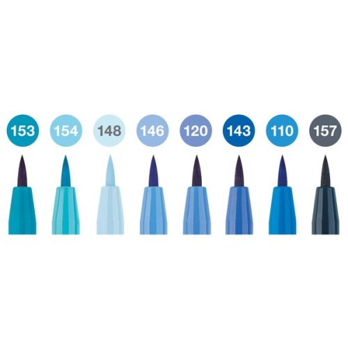 Popisovač Faber-Castell Pitt Artist Pen Brush Blues - sada 8 ks, hrot B