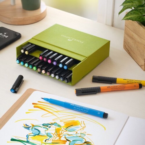 Moderní umělecký popisovač Faber-Castell Pitt Artist Pen Brush pro tušové skicování, kreslení a malbu se štětečkovým hrotem, 24 ks.