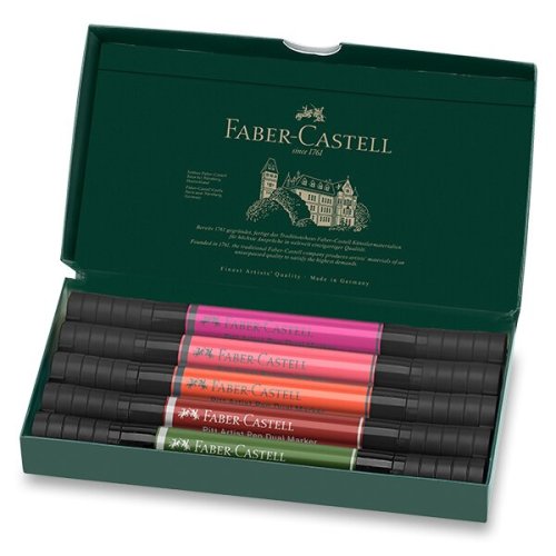 Sada 5 ks moderního uměleckého oboustranného popisovače Faber-Castell Pitt Artist Pen Dual Marker pro tušové skicování, kreslení a malbu.