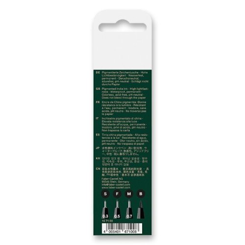 PH neutrální inkoust bez obsahu kyselin, * inkoust je odolný proti působení slunečního záření, * po zaschnutí vodědolný, nerozmazávající se na papíře, , TYPY HROTŮ POPISOVAČŮ FABER-CASTELL PITT ARTIST PEN, TIP: K uměleckým psacím potřebám můžete potřebovat i speciální papír, na kterém se inkoust popisovačů nerozpíjí.