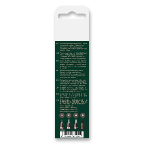 PH neutrální inkoust bez obsahu kyselin, * inkoust je odolný proti působení slunečního záření, * po zaschnutí vodědolný, nerozmazávající se na papíře, , TYPY HROTŮ POPISOVAČŮ FABER-CASTELL PITT ARTIST PEN, TIP: K uměleckým psacím potřebám můžete potřebovat i speciální papír, na kterém se inkoust popisovačů nerozpíjí.