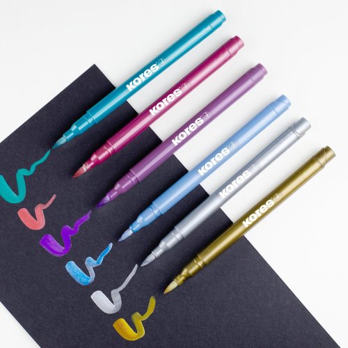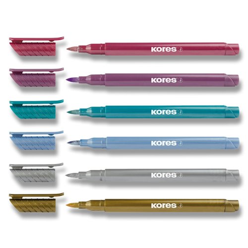 Popisovač Kores Style Brush Marker - Metallic, 6 barev