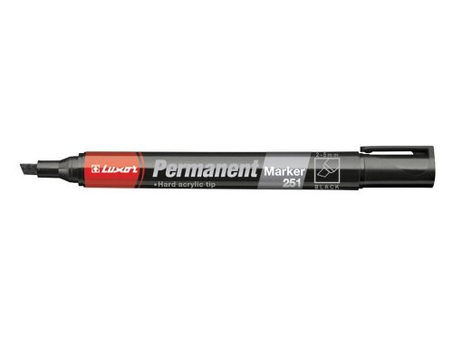 Permanentní popisovač LUXOR 251 zelený se seřízlým hrotem lze použít na většinu povrchů.