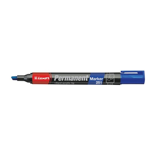 Permanentní popisovač LUXOR 251 zelený se seřízlým hrotem lze použít na většinu povrchů.